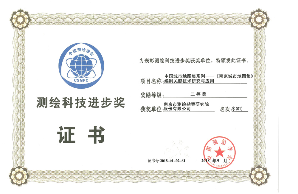 全國測繪科技進步二等獎——中國城市地圖集系列-《南京城市地圖集》編制關(guān)鍵技術(shù)研究與應(yīng)用
