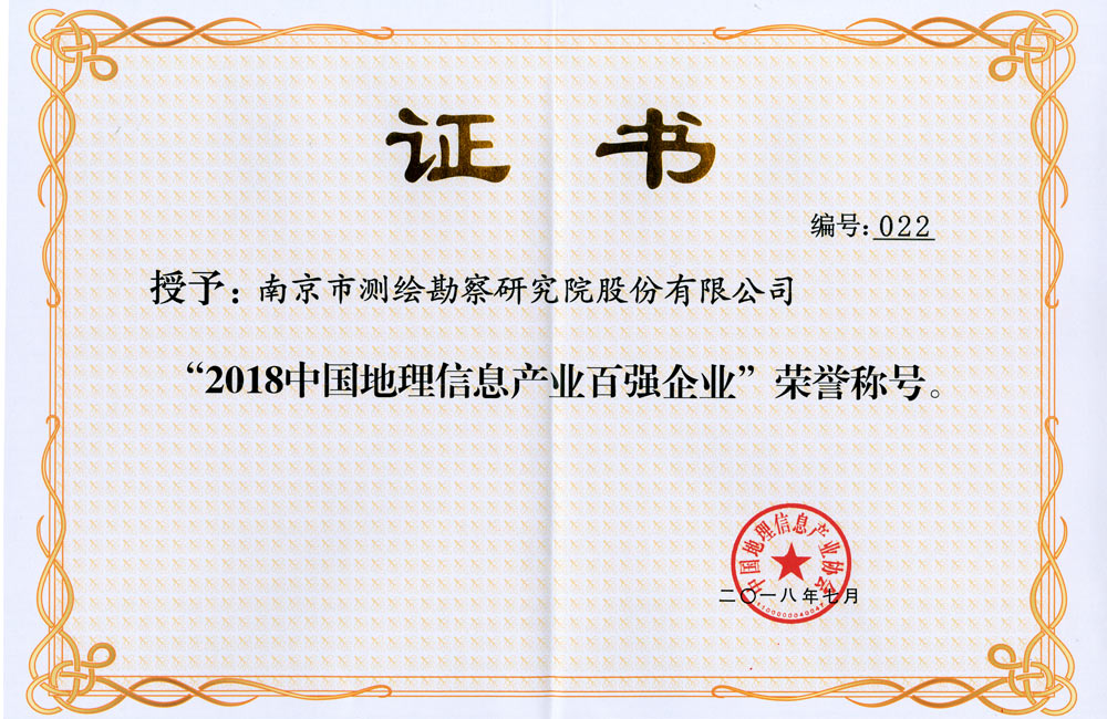 2018中國地理信息產(chǎn)業(yè)百強企業(yè)