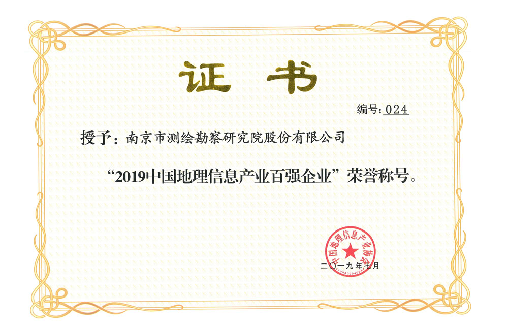 2019年中國地理信息產(chǎn)業(yè)協(xié)會百強企業(yè)