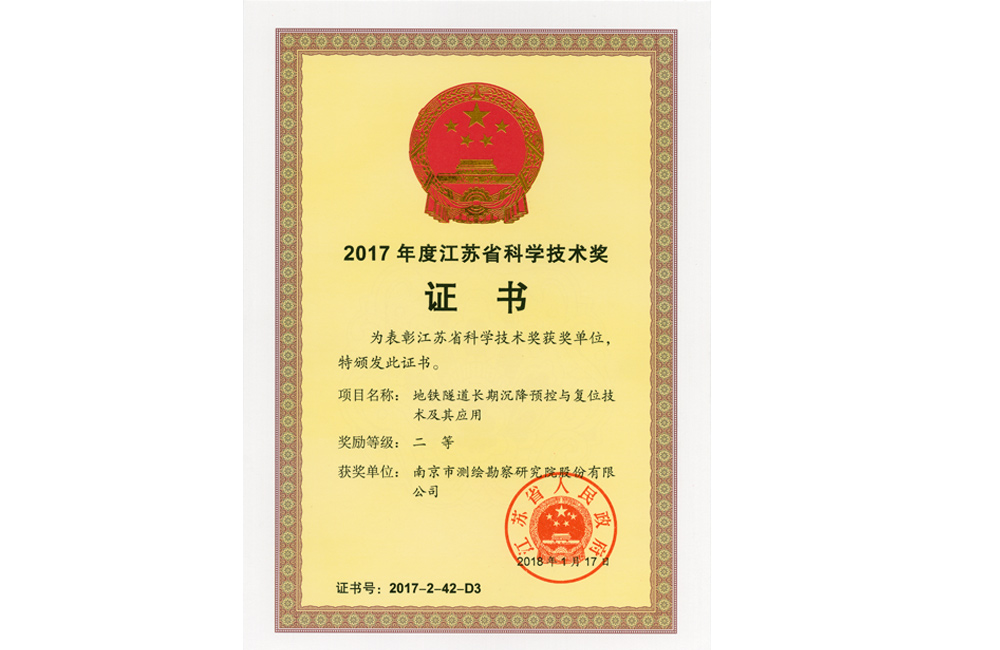 2017年度江蘇省科學(xué)技術(shù)二等獎——地鐵隧道長期沉降預(yù)控與復(fù)位技術(shù)及其應(yīng)用