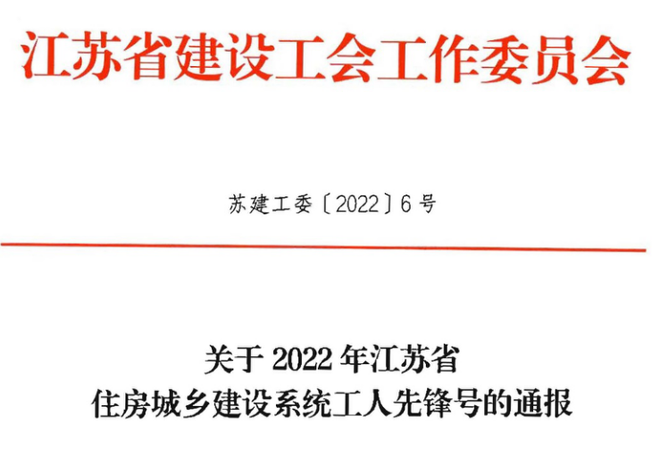 近日,江蘇省建設(shè)工會工作委員會發(fā)布了《關(guān)于2022年江蘇省住房城鄉(xiāng)建設(shè)系統(tǒng)工人先鋒號的通報》,表彰了一批以“一流工作、一流服務(wù)、一流業(yè)績”為主要內(nèi)容的工人先鋒號...