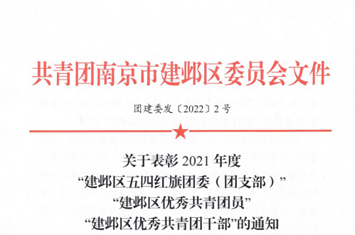 為表彰先進(jìn),樹立典型,在建團(tuán)百年之際,共青團(tuán)南京市建鄴區(qū)委員會下發(fā)了2021年度“兩紅兩優(yōu)”的表彰通知,其中公司團(tuán)委第一團(tuán)支部被授予“建鄴區(qū)五四紅旗團(tuán)(總)支部...